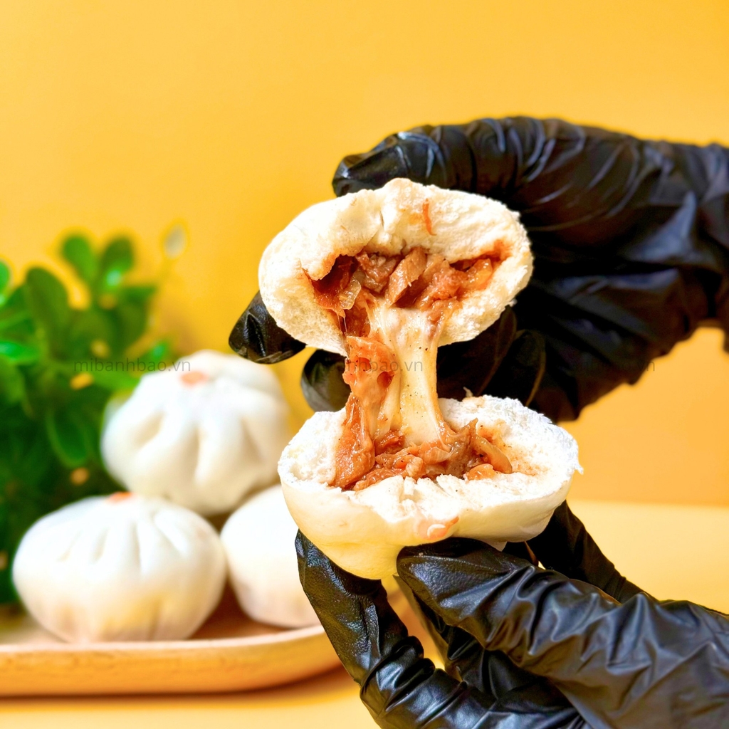 ✔ Nhân xá xíu mặn ngọt đậm đà: Thịt xá xíu cắt nhỏ thấm vị kết hợp cùng phô mai mềm mịn – cắn một cái là mê!